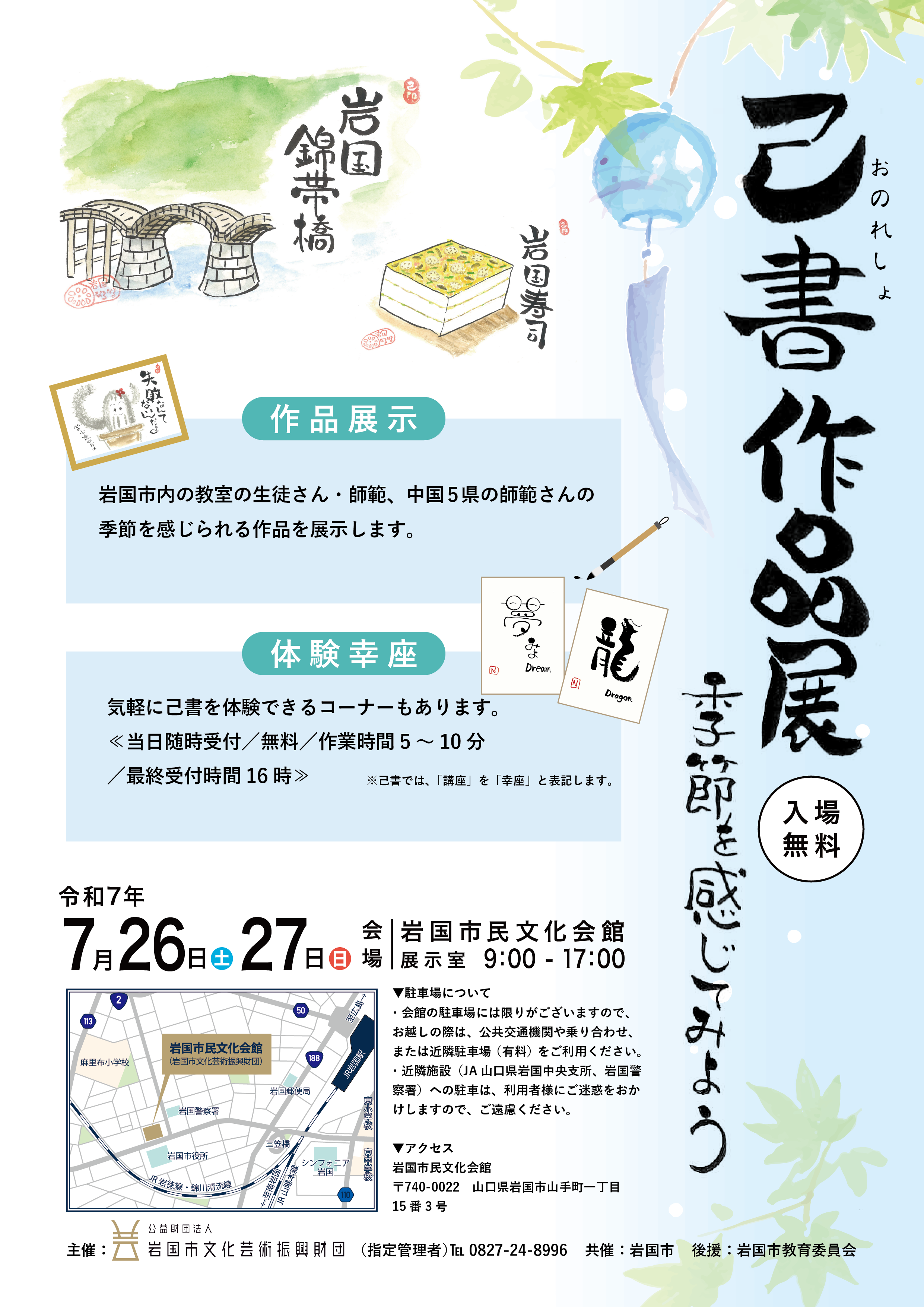 公益財団法人岩国市文化芸術振興財団の電話(℡0827-24-8996)のみで受付