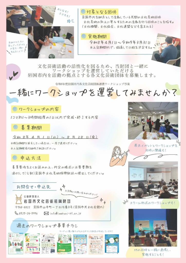 【募集】令和8年度岩国市内各文化芸術団体連携ワークショップ事業